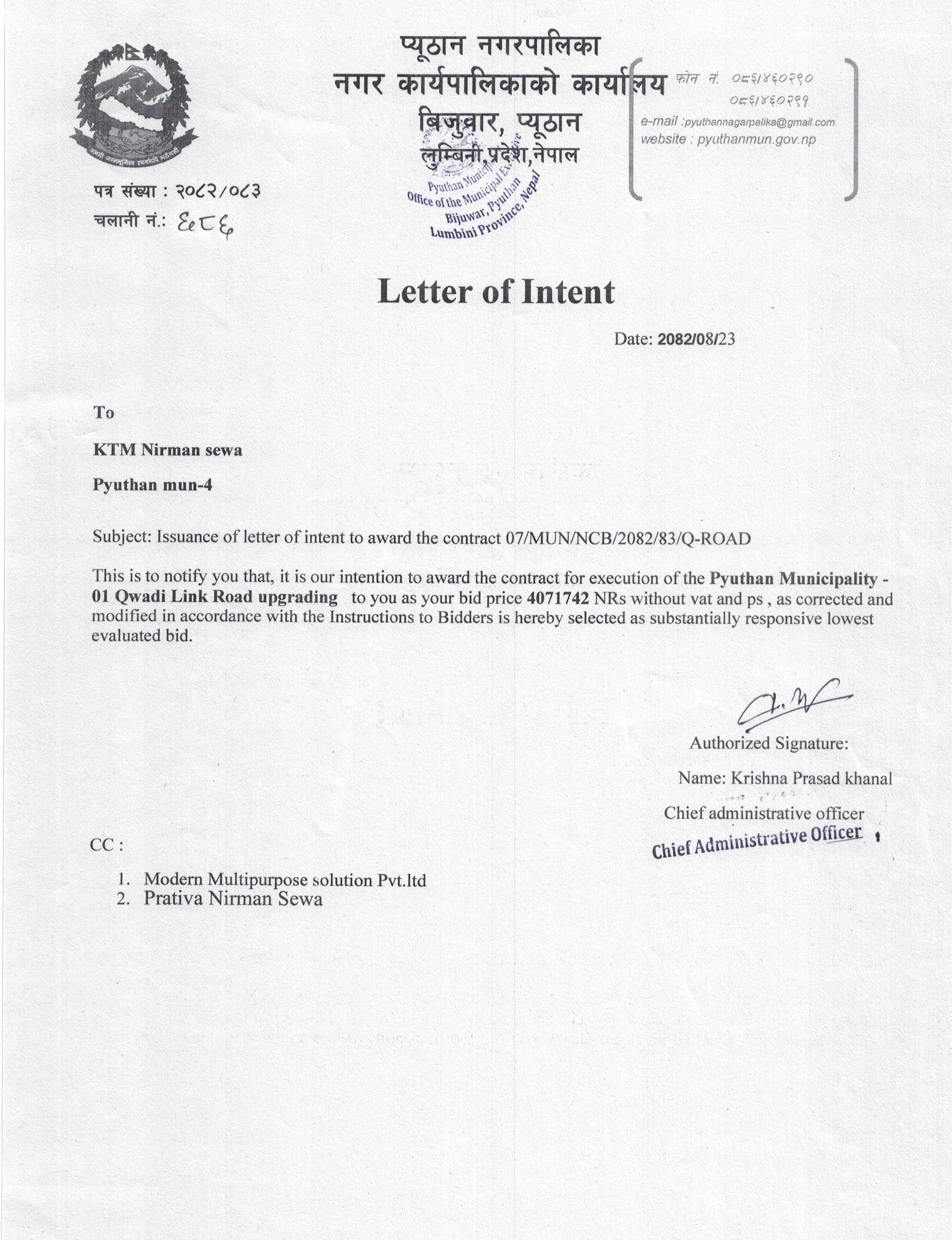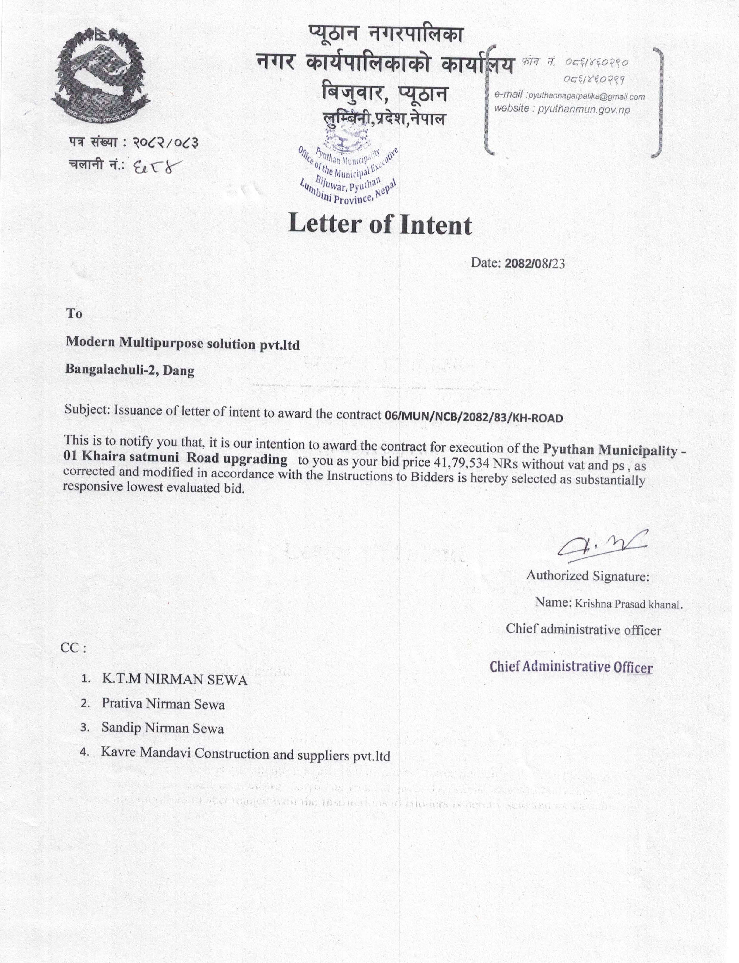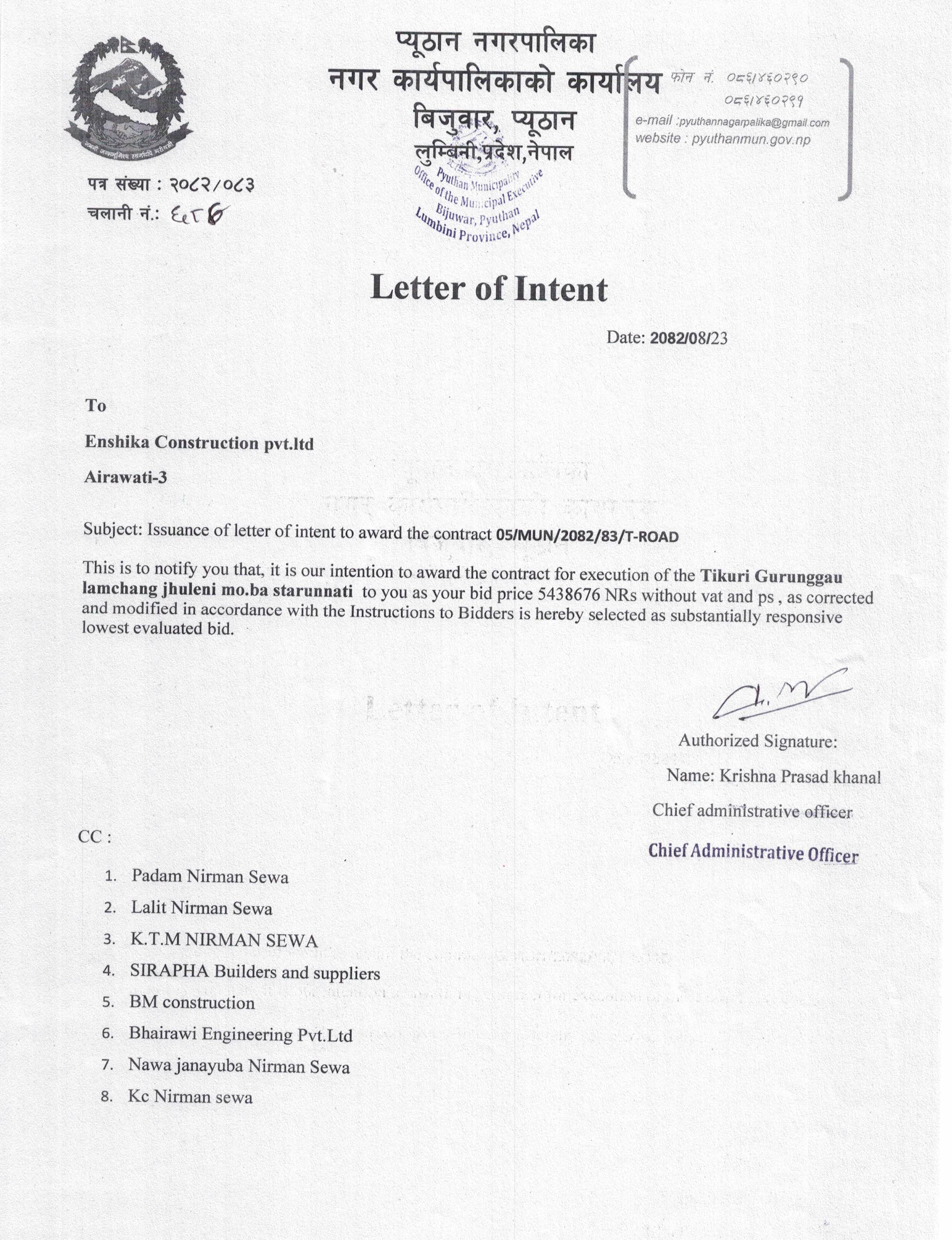 ठेक्का नं. ५(टिकुरी गुरुङगाँउ लम्छ्याङ झुलेनी मो.वा. स्तरोन्नती)