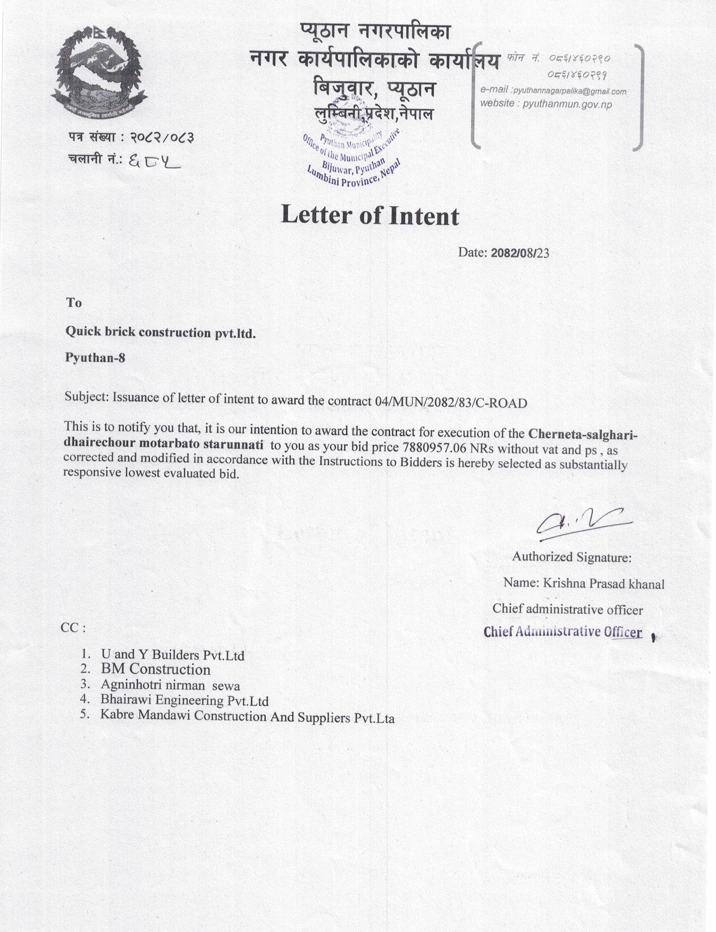 ठेक्का नं. ७(क्वाडी लिङ्क रोड स्तरोन्नती)