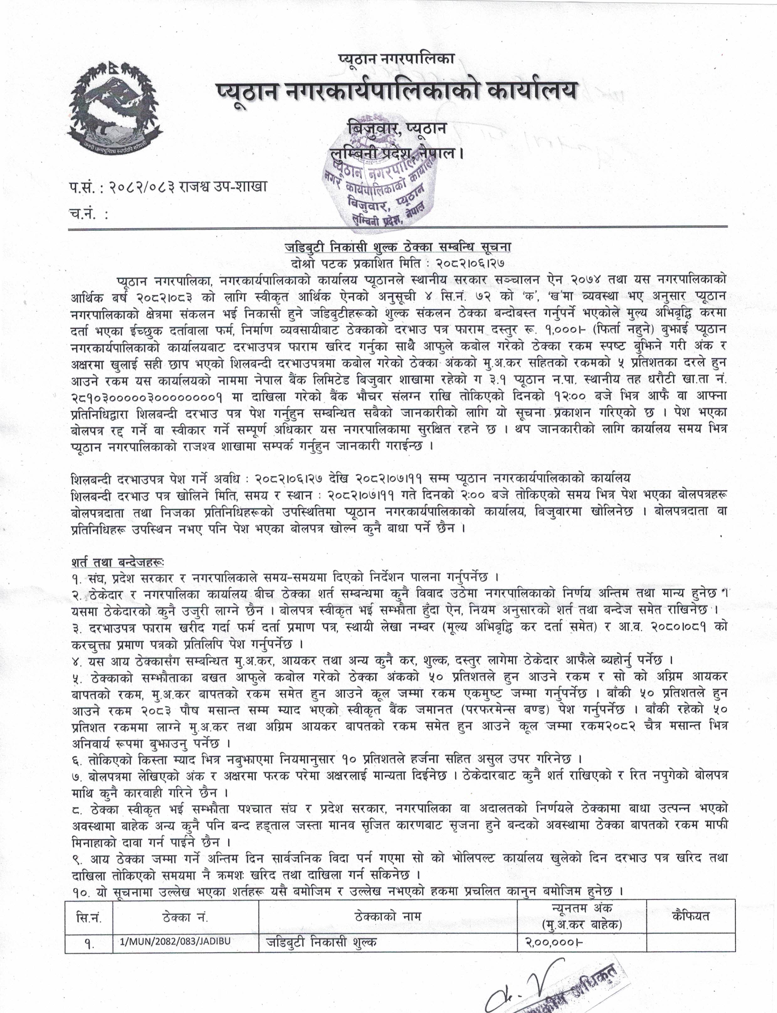 जडिबुटी निकासी शुल्क ठेक्का सम्बन्धी सूचना