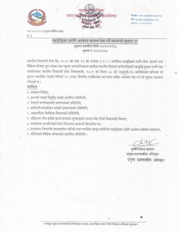 आशय पत्र सम्बन्धि सूचना (ठेक्का नं. ३)