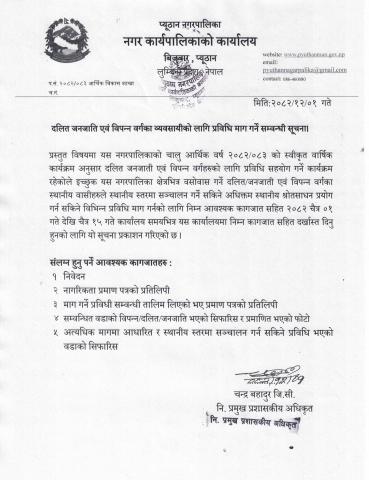 प्यूठान नगरपालिकाको कार्यालयद्वारा मिति २०८२/१२/०१ गते प्रकाशित बिभीन्न सूचनाहरु