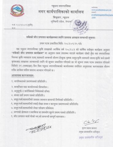 मकैको विउ उत्पादन कार्यक्रमका लागि प्रस्ताव आह्वान सम्बन्धी सूचना
