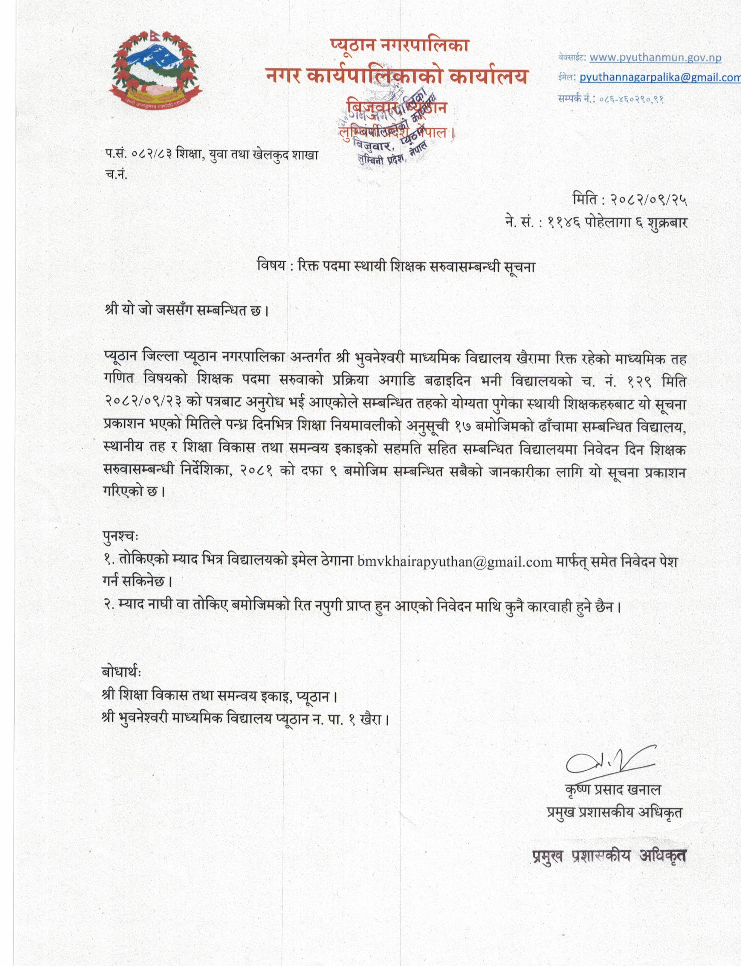 रिक्त पदमा स्थायी शिक्षक सरुवा सम्बन्धी सूचना