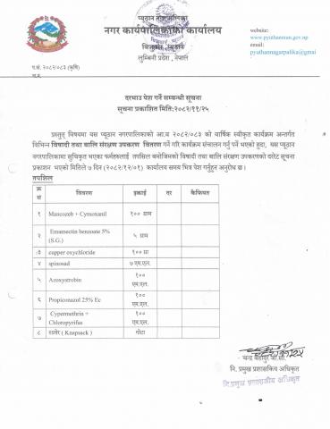 विषादी तथा बाली संरक्षण उपकरणहरुको दरभाउ पेश गर्ने सम्बन्धि सूचना !!!!!