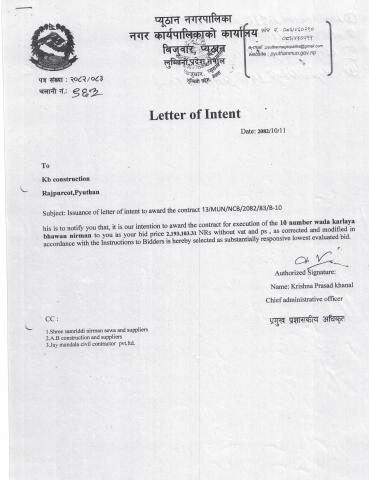 Letter of Intent ठेक्का नं १३(१० नं. वडा कार्यालय भवन)