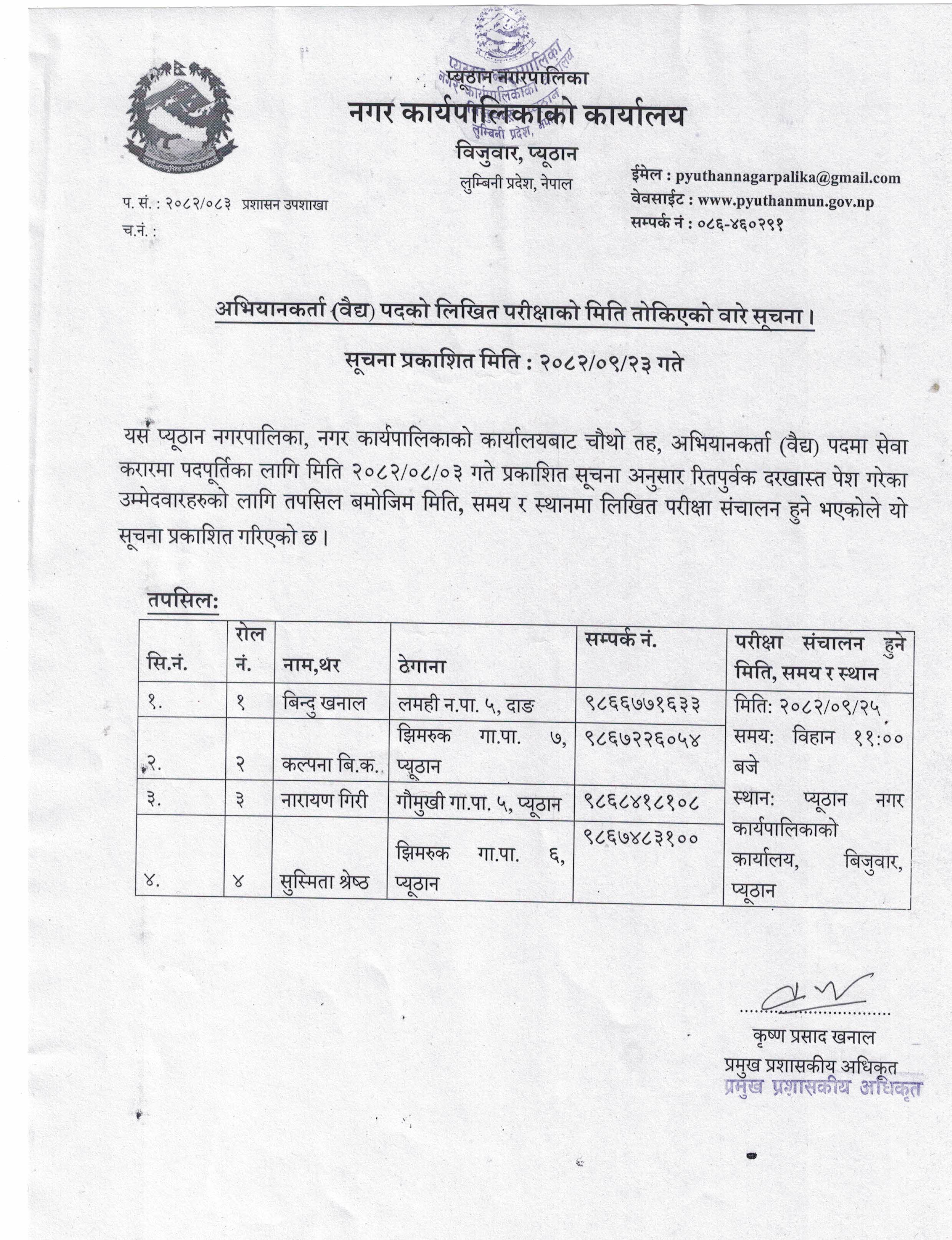 अभियानकर्ता पदको लिखित परीक्षाको मिति तोकिएको वारे सूचना ।