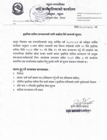 ड्राईभिङ तालिमका सञ्चालन प्रस्ताव पेश गर्ने सम्बन्धी सूचना !!
