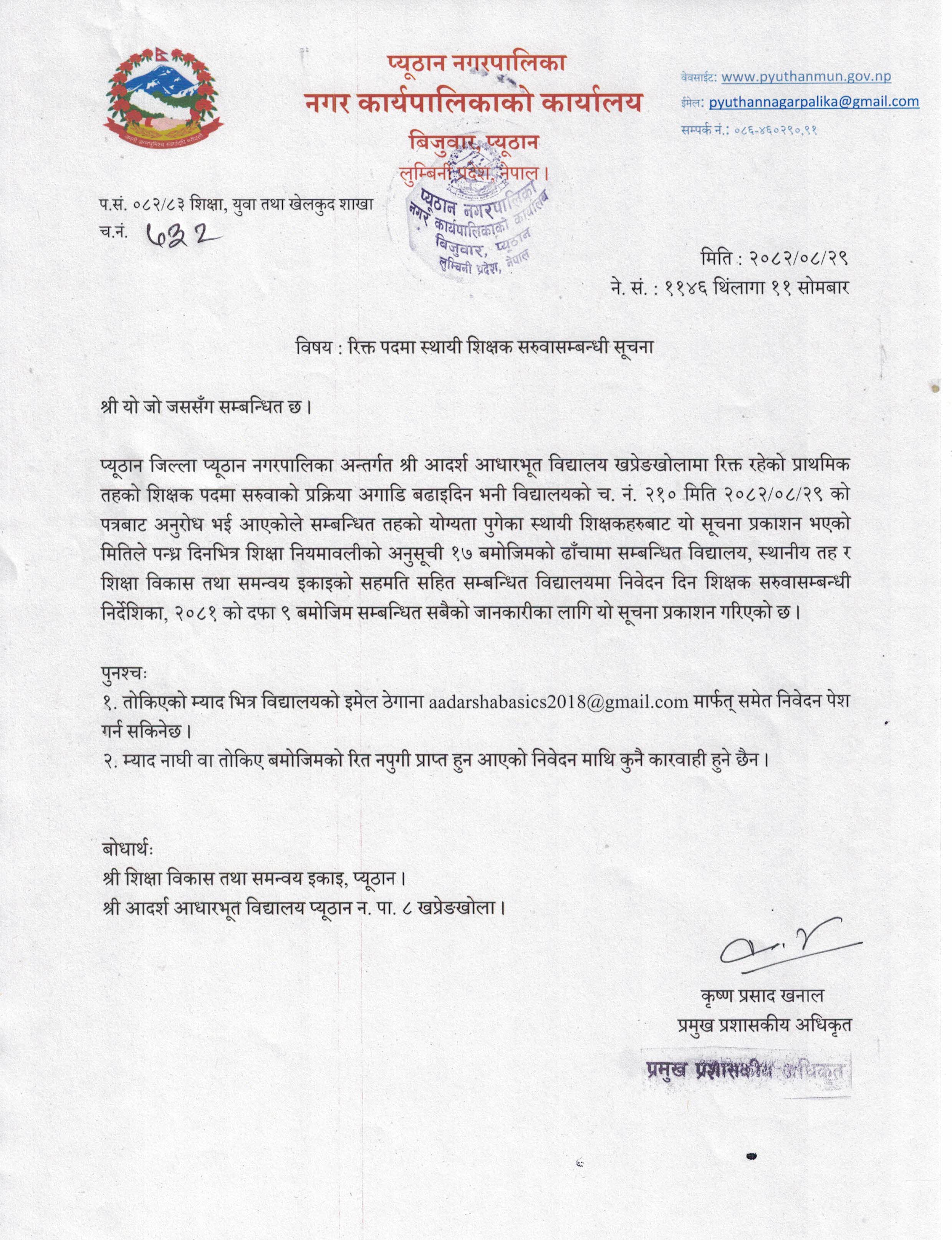 रिक्त पदमा स्थायी शिक्षक सरुवा सम्वन्धी सूचना !!