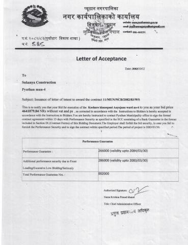 Letter of Acceptance Pyuthan Jilla Maidan Bhitrikot Sadak Istarunnati