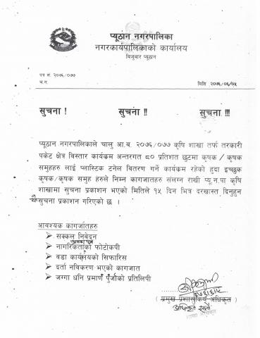 ८०% छुटमा प्लाष्टिक टनेल वितरण सम्बन्धि सूचना
