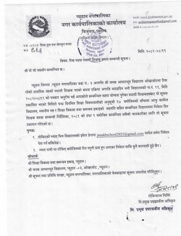 रिक्त पदमा स्थायी शिक्षक सरुवा सम्बन्धी सूचना ।