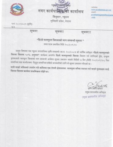 हिउदे फलफूलको विरुवा माग सम्बन्धी सूचना